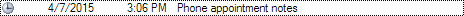 This sample line from the Reminders list shows the four items of information displayed about each reminder:
